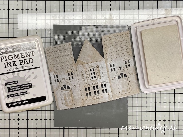 Preko stencil šablone sem na zunanjost nanesla belo teksturno pasto.