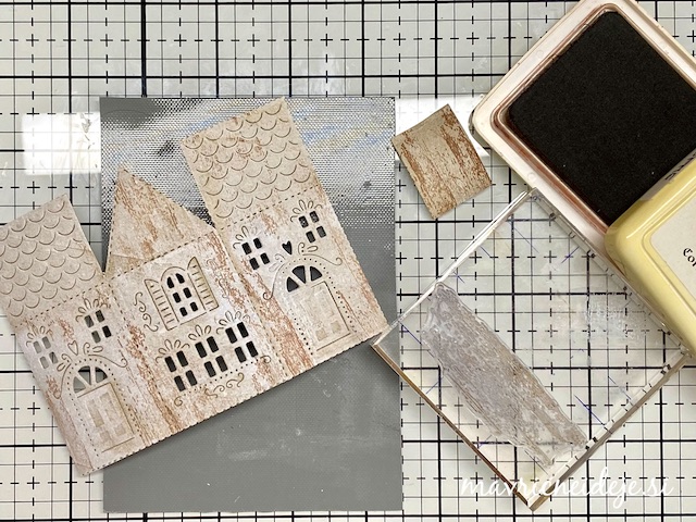Med sušenjem teksturne paste sem na belo snežinko (ulitek iz smole) nanesla črn gesso.