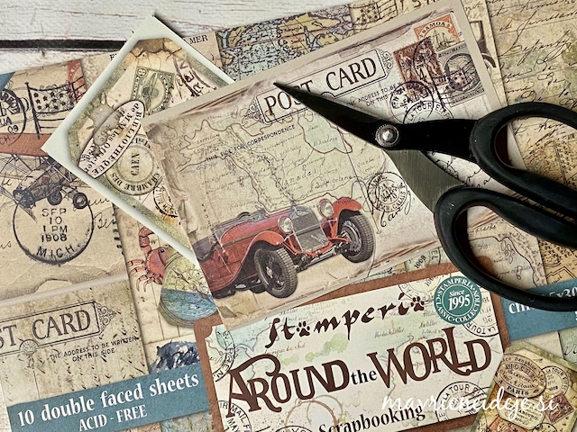 Pod osrednji motiv sem podložila črn papir, ki sem ga nemanoma namestila postrani in nato vse skupaj na pobarvan papir.