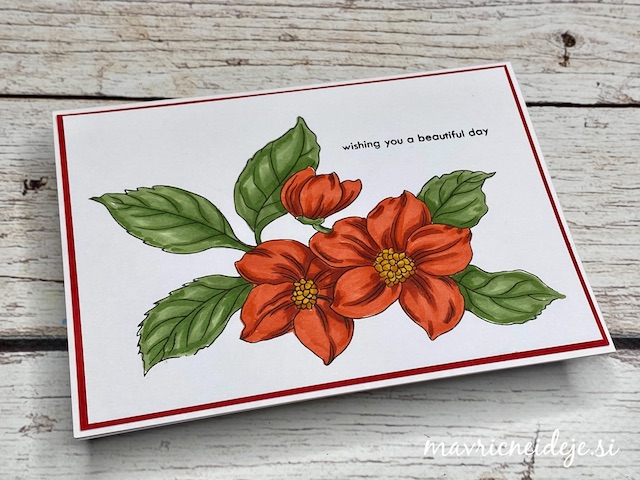 Pozdravljeni v sobotno jutro, ta teden izdelujemo voščilnice po skici. Na moji je osrednji element venček.