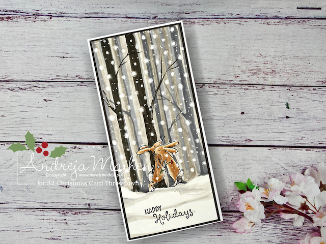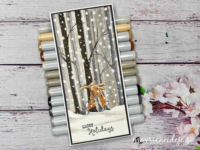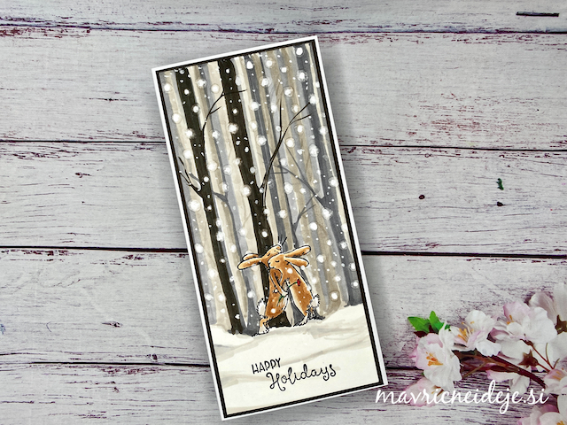 Na željo slavljenke sem izdelala voščilnico z mišjo zabavo. Osnovo sem izdelala s pomočjo rezalne šablone Lawn Fawn PLATFORM POP-UPS, miške pa so iz seta Anita Jeram~Tea Time Fun.