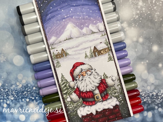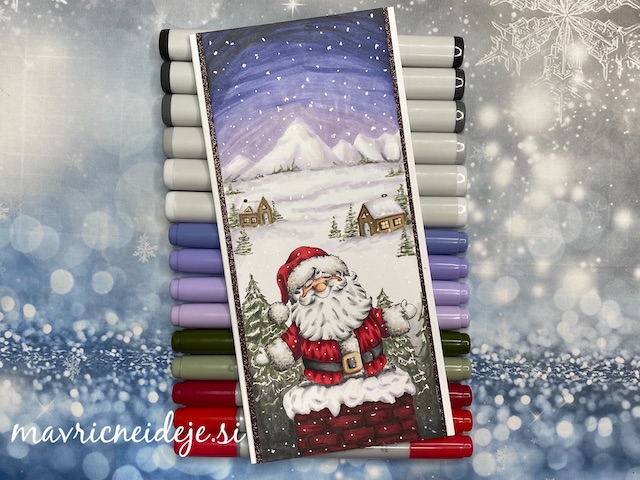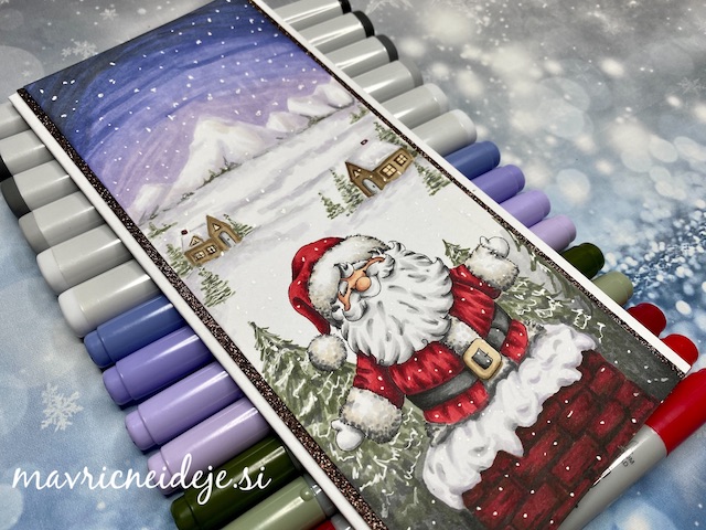 V deževnem vremenu si rada naredim dober načrt dneva, saj si le tako lahko organiziram dovolj časa, za takšno maratonsko barvanje, kot ga je zahtevala slimline voščilnica z Božičkom.