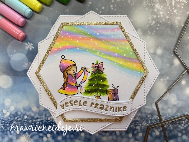 Na Color Copy300g papir sem sprintala digi štampiljko in jo pobarvala c Copic markerji.