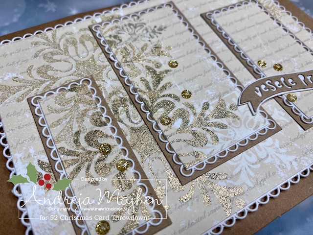 Prav tako sem z zlatim prahom embosirala krasno štampiljko TI in ostalo besedilo.