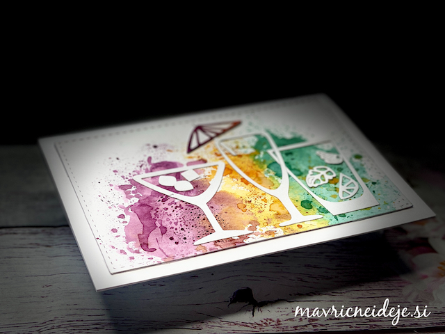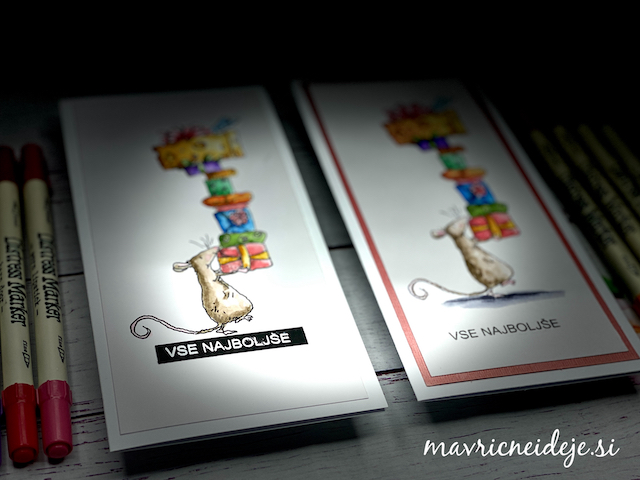 Simpatičen motiv učenega črva sem pobarvala z Distress Markerji v akvarelni tehniki in sestavila voščilnico.