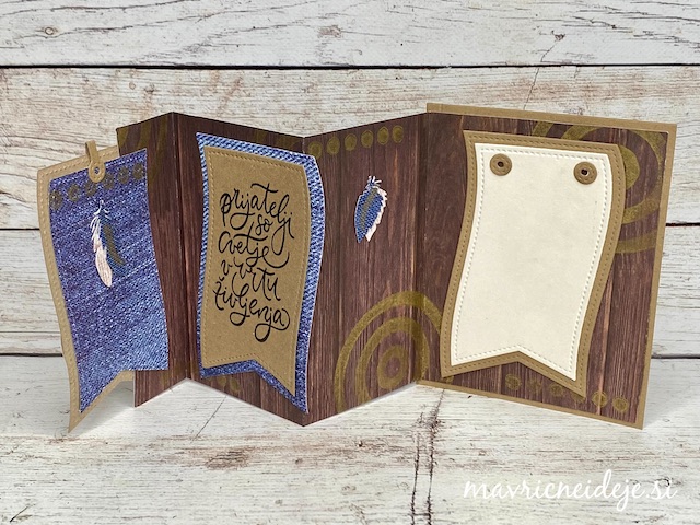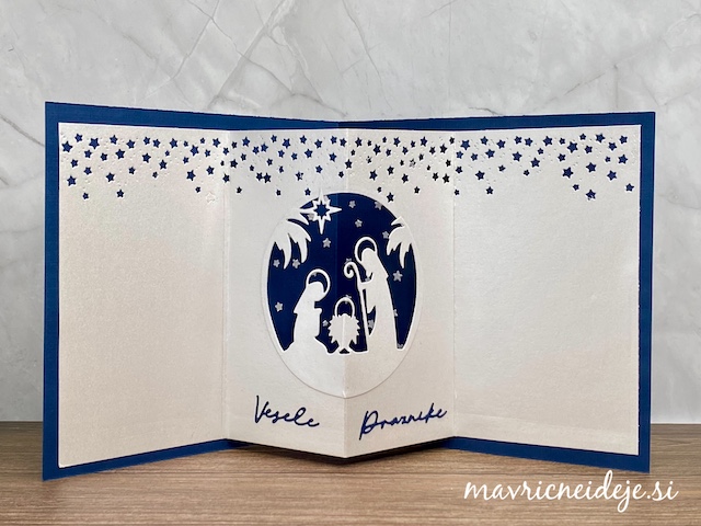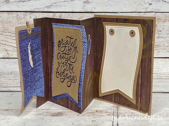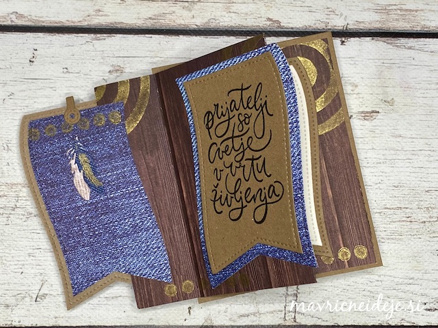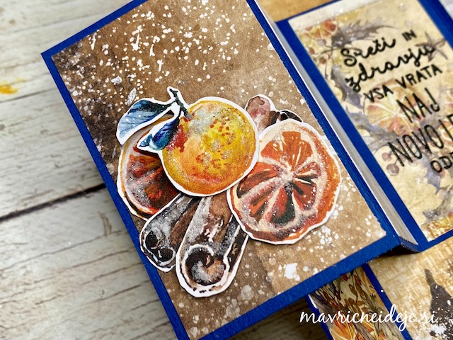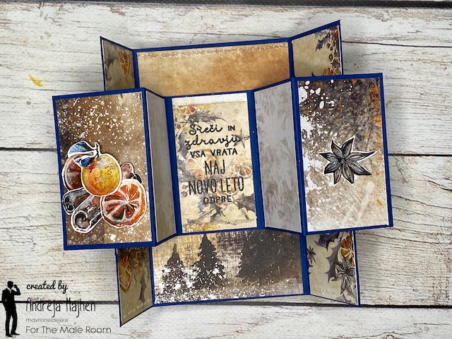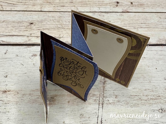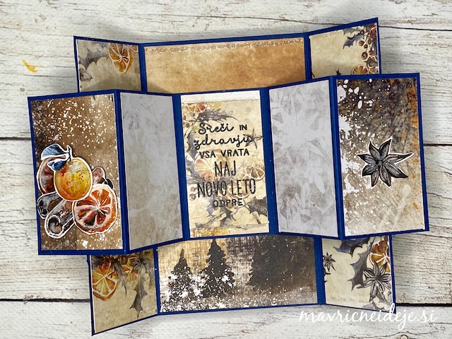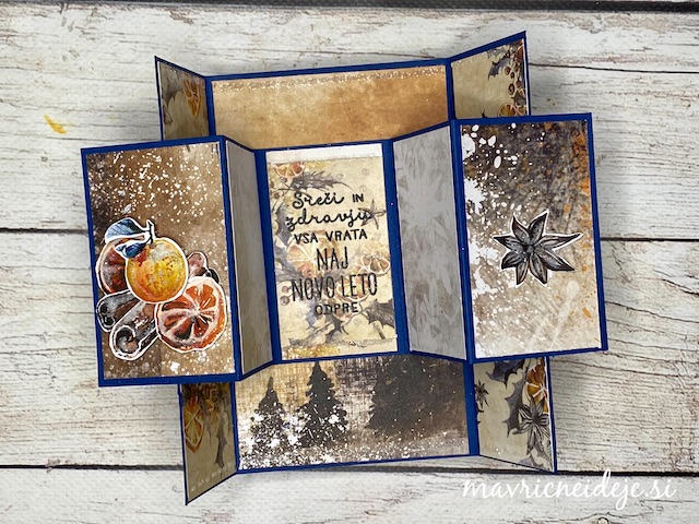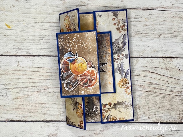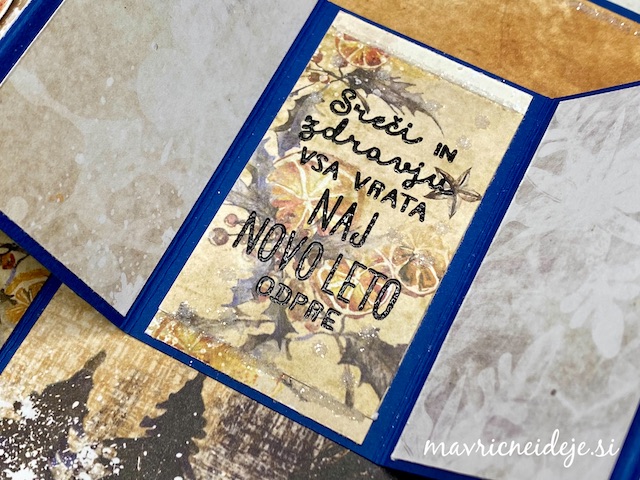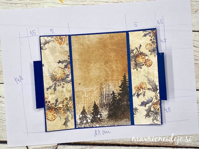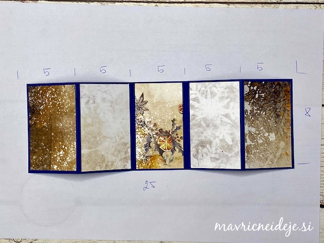 Osnovo sem izdelala iz svetlo modrega papirja s teksturo, vse ostalo pa so potiskani papirji.