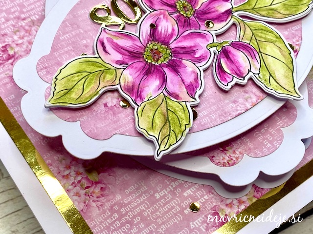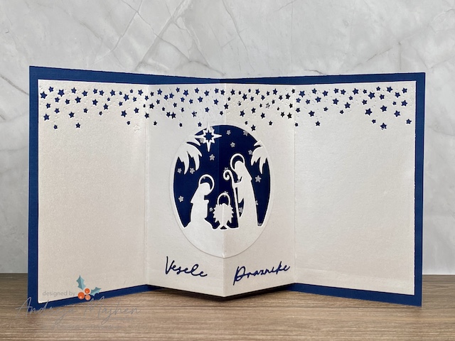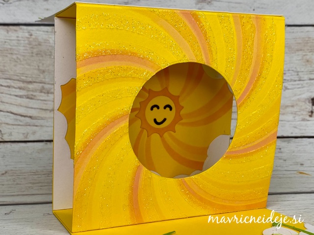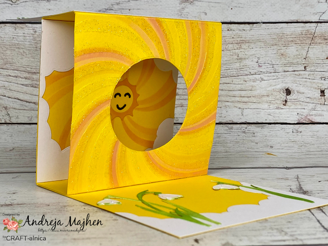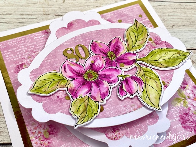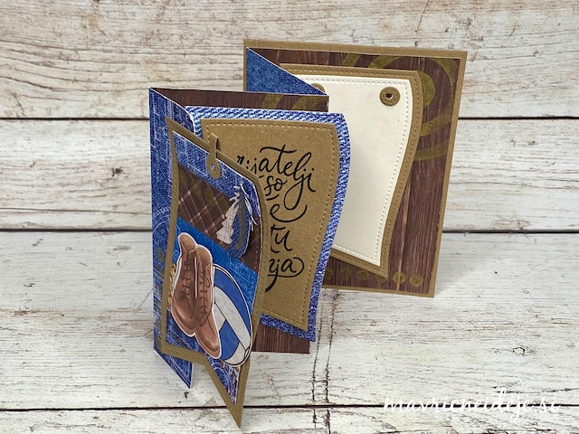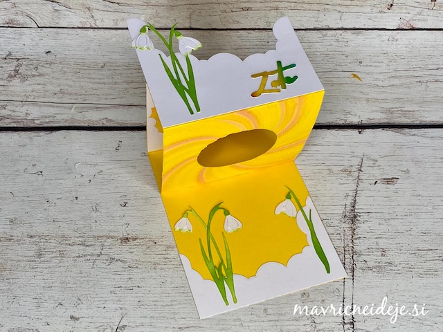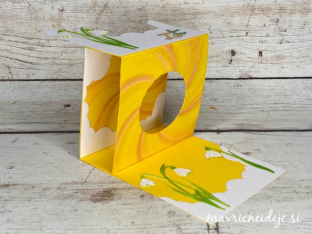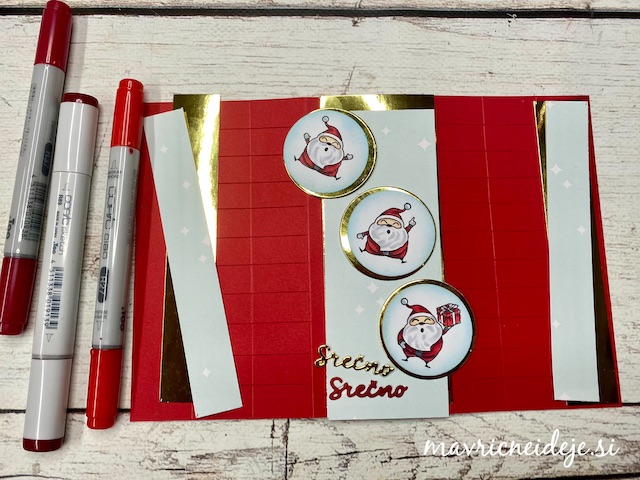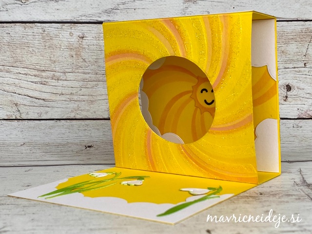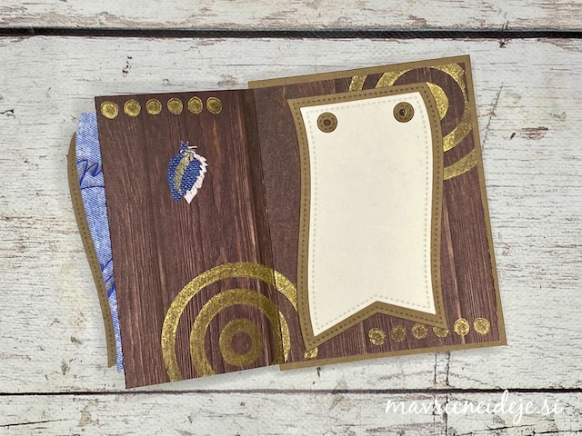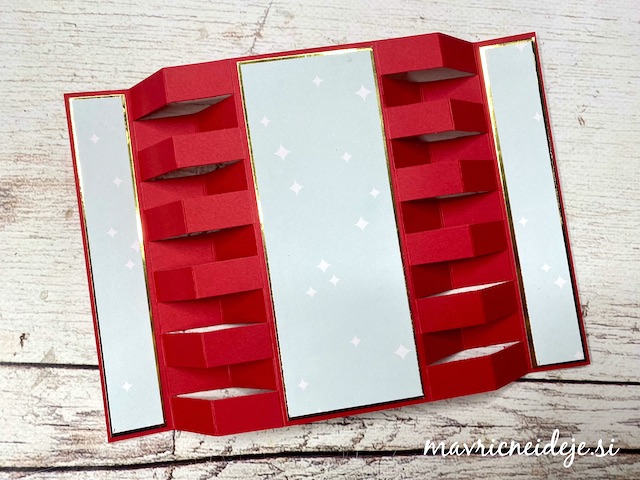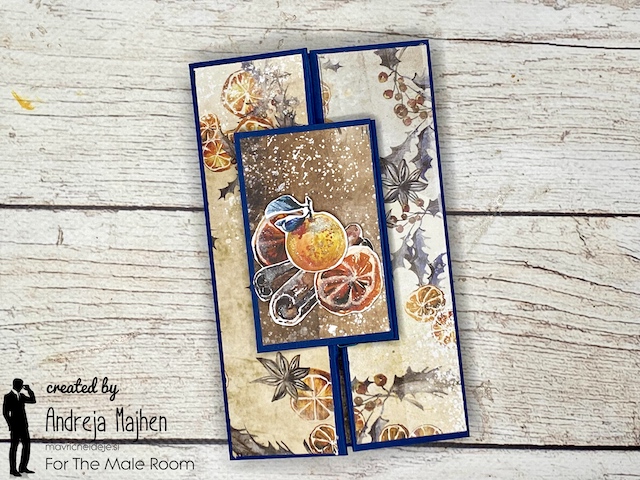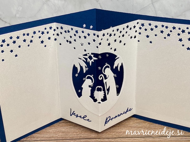 Osnovo sem izdelala iz svetlo modrega papirja s teksturo, vse ostalo pa so potiskani papirji.