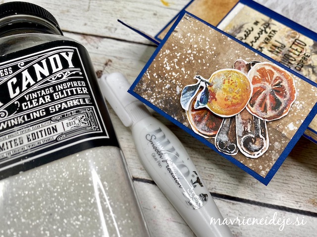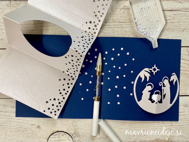 Med motive sem namestila še nekaj izrezov iz svetlo modrega papirja in dodala bleščice.