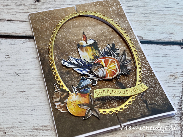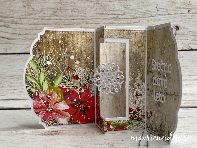 Pozdravljeni v novem izzivi pri 52 CCT, ki se glasi: novoletna voščilnica nenavadne oblike. izdelala sem voščilnico z dekorativnim robom in vrtečo snežinko v sredini.