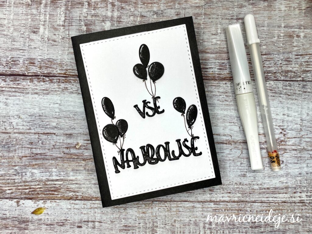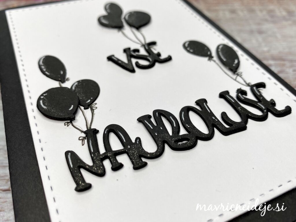Odtis sem pobarvala z alkoholnimi markerji, dodala napis in vse podložila z rdečim papirjem. Vse skupaj sem namestila na papir s teksturo, tega pa na pokončno osnovo za voščilnico.