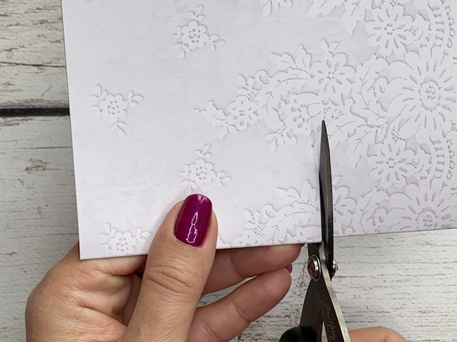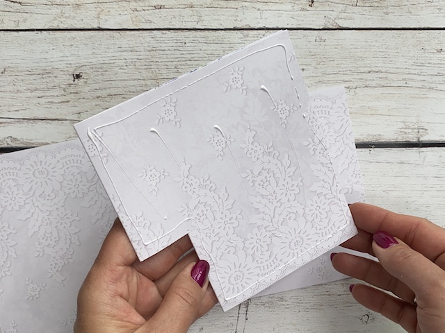 Preko stencil šablone sem na zunanjost nanesla belo teksturno pasto.