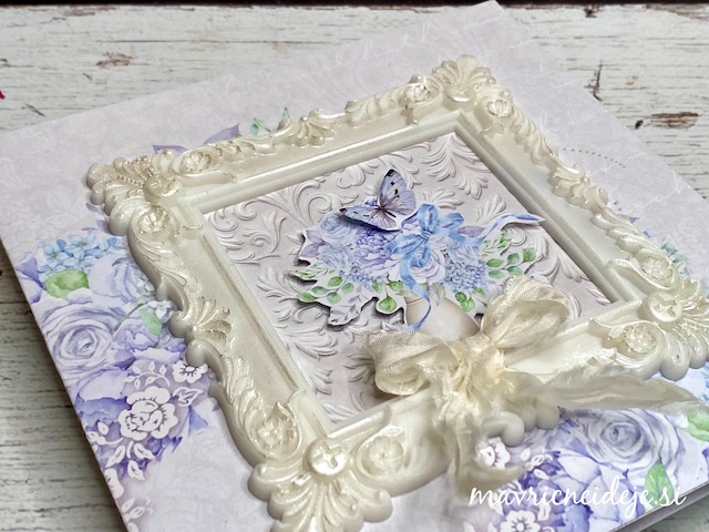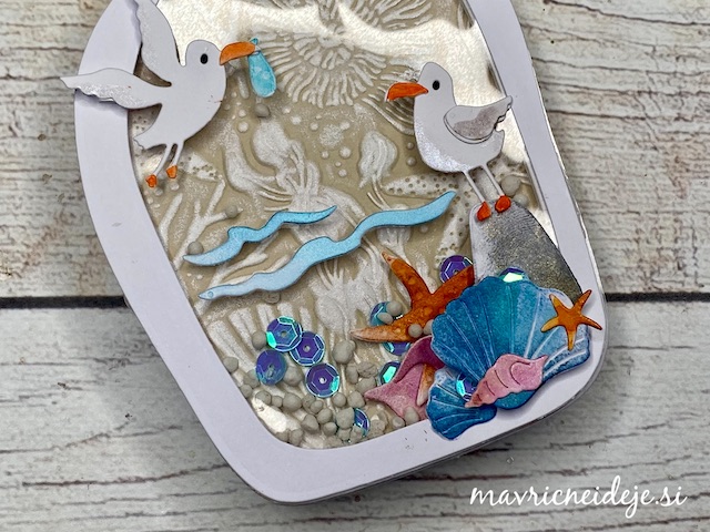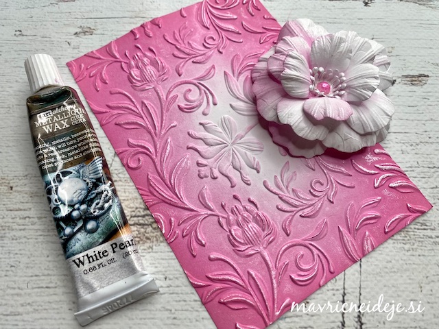 Zunanjost škatle sem najprej pobarvala z res močno razredčemo belo perl akrilno barvo, da je dobila nežen kovinski sijaj.