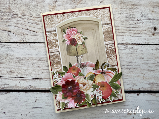 Da je voščilnica videti kot bomboniera, sem iz potiskanega papirja izdelala okvir, ki sem ga podložila s 3d lepilnim trakom.