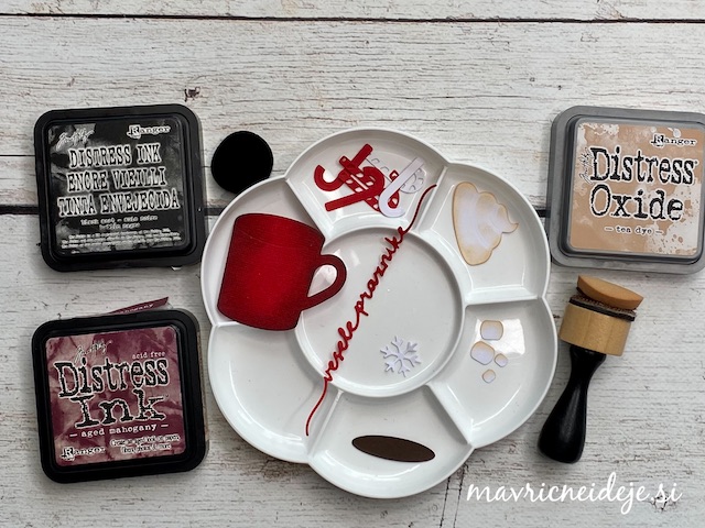 Za izreze čokoladic sem uporabila rjav papir s teksturo. Pripravila sem si tudi izreze iz sive lepenke, ki so dodali dimenzijo.