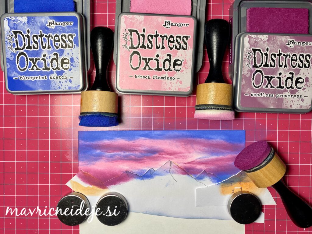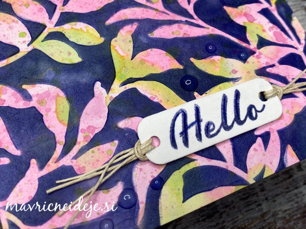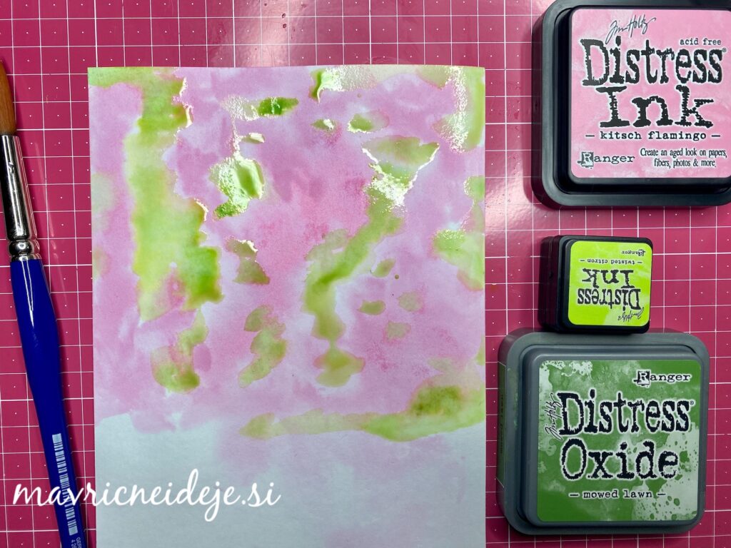 Izdelala sem trsočko in ujemajo škatlico, vse iz belega pearl papirja. Embosing srajčko z motivom čipke sem pobarvala z distress oxide kitsch flamingo in v njej embosirala akvarelni papir.