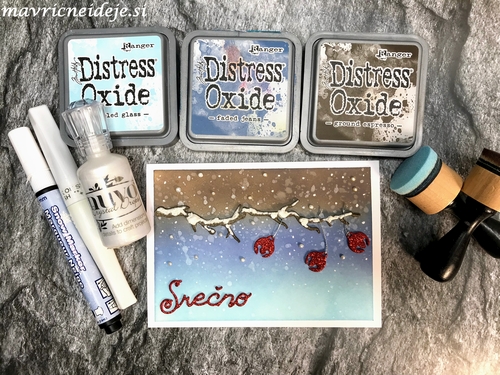 Uporabila sem Distress oxide blazinice in črn bleščeč papir.