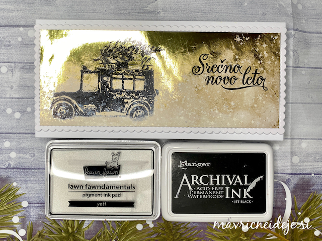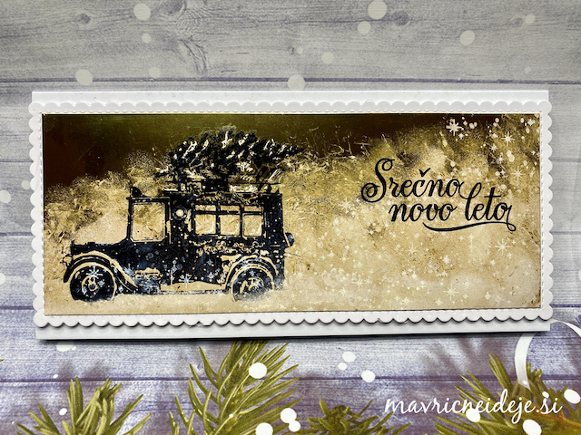 Za zadnji izziv pri The Male Room Blog izzivu vas vabimo, da pokažete karkoli moškega ste ustvarile. Jaz vam pokažem novoletno voščilnico z zabavnim prepogibom, ki sem jo izdelala iz ostankov potiskanega papirja.