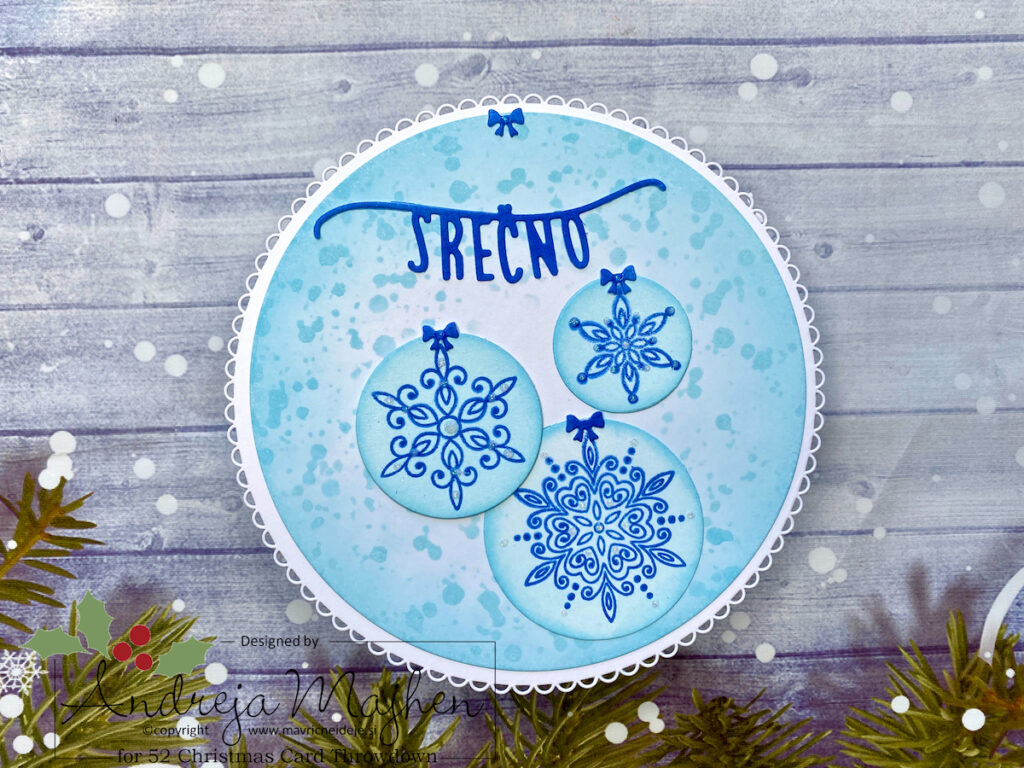 Pozdravljeni v sobotno jutroin barvnem izzivu. Ta teden želimo novoletne voščilnice v naravni – kraft in beli barvi. Moja voščilnica je sestavljena iz belih snežink z malo belih bleščicami.