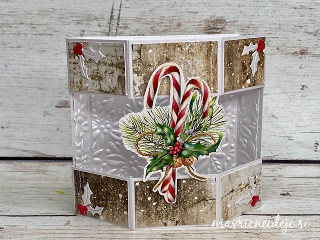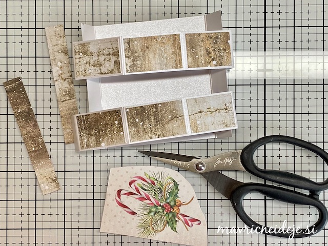 Osnovo sem izdelala iz svetlo modrega papirja s teksturo, vse ostalo pa so potiskani papirji.