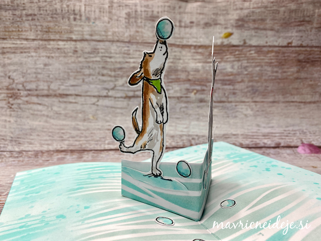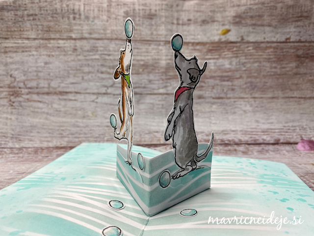 Kadar so potiskani papirji res dobre kvalitete, jih lahko uporamo tudi kot osnovo za voščilnoco. Tudi tokrat sem vključila pop up element v notranjost. Prvo stran pa sem obogatila z okvirčkom.