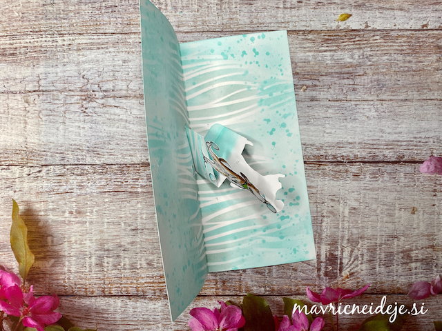 Kadar so potiskani papirji res dobre kvalitete, jih lahko uporamo tudi kot osnovo za voščilnoco. Tudi tokrat sem vključila pop up element v notranjost. Prvo stran pa sem obogatila z okvirčkom.