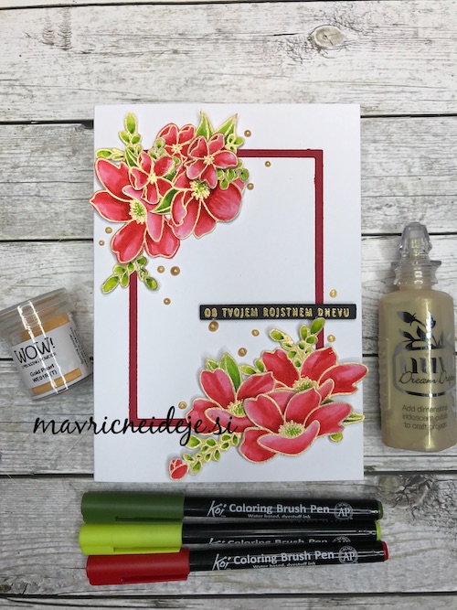 Uporabila sem BUGABOO digi štampiljko, ki sem jo sprintala na Color Copy 250g papir in pobarvala s COPIC markerji.