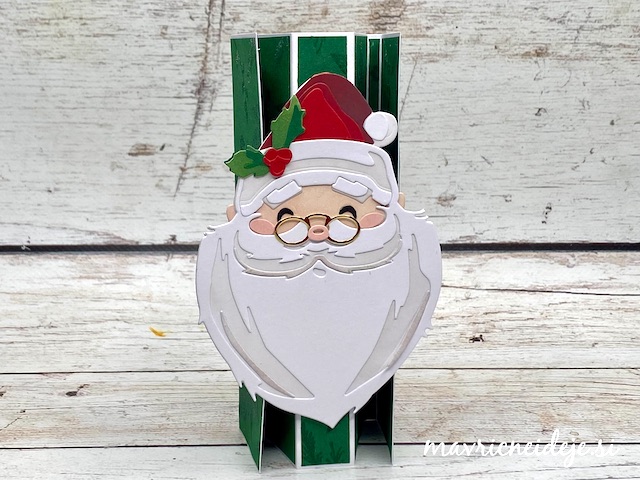 Na sredinski del osnove sem namestila 3d obojestranski lepilni trak in nanj prilimala Božička.