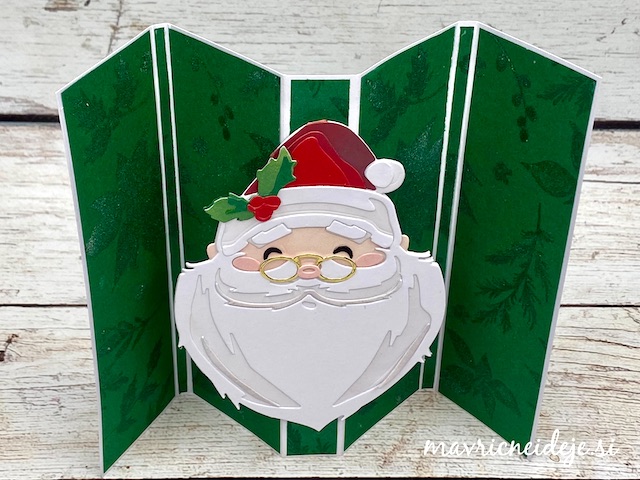 Moja voščilnica in božička, ki je nameščen na osnovo z nenavadnim prepogibom.