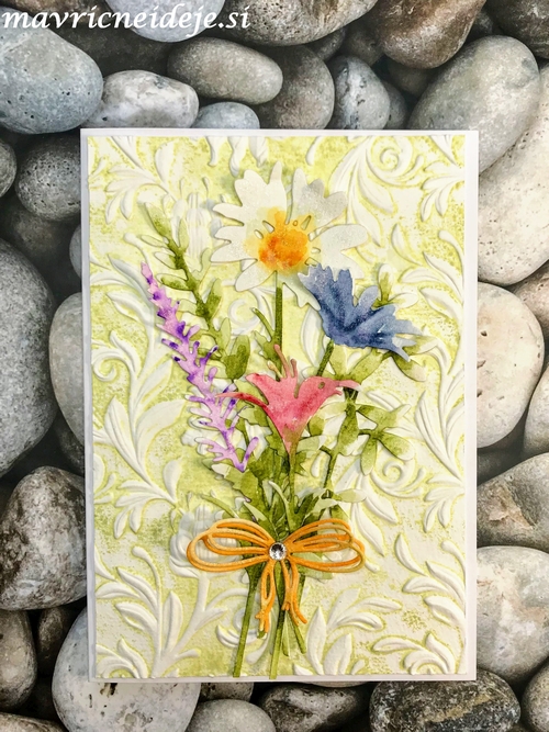 Čipkast rob je rezalna šablona Crealies, bilka pa Sizzix wildflower.