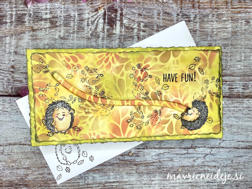 Na ozadje se z Distress oxide blazinicami in stencil šablono ustvarila mavrico.