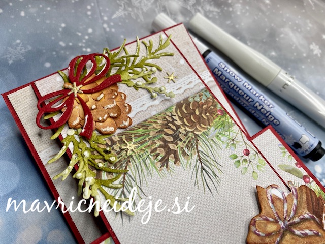 Uporabila sem LemonCraft papir, Nuvo Pure Sheen Confetti -Jingle Bells, rezalne šablone črke, kapa ploščo in prozorno folijo. Črke sem zasnežila s Snow markerjem.