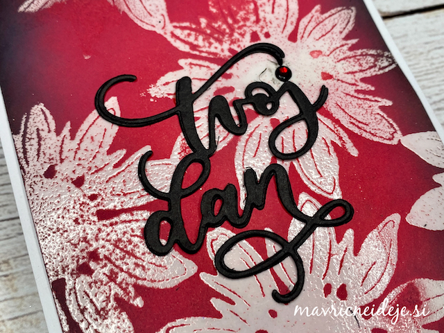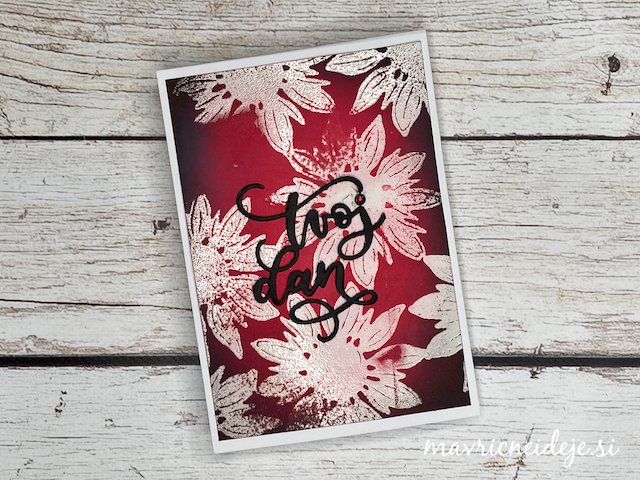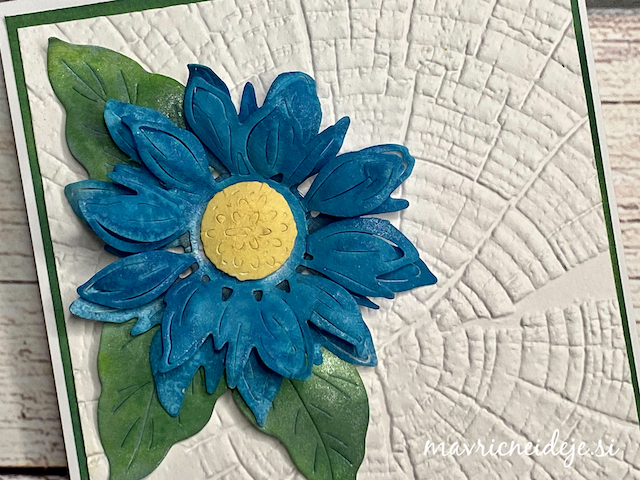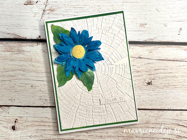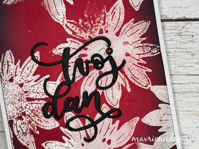 Vazo sem odtisnila s sivo blazinico in jo pobarvala s Copic – alkoholnimi markerji ter izrezala z ujemajočo rezalno šablono.
