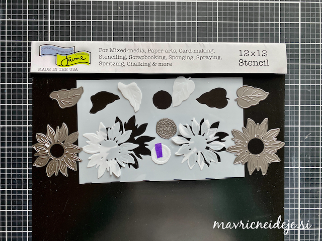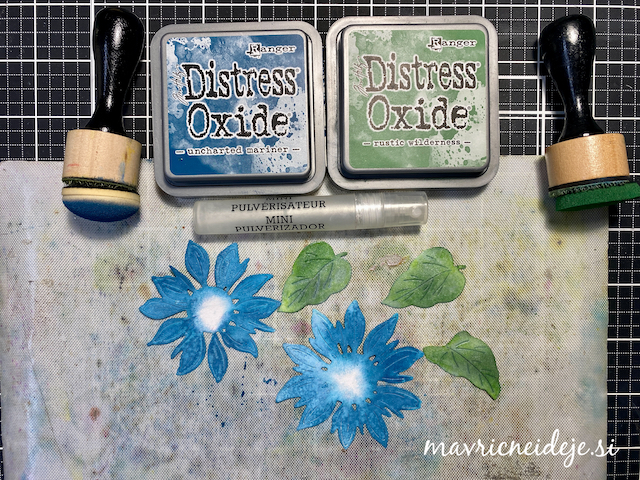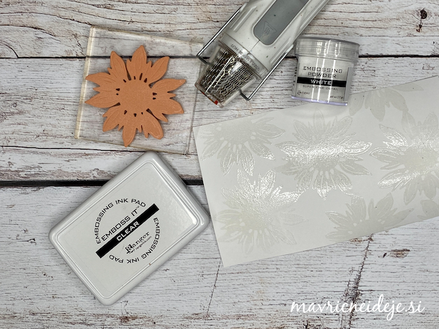Vazo in prvi cvet sem na ozadje namestila s 3d lepilnim trakom, drugi cvet s tekočim lepilom in tretjega s federčkom – wobble spring. Tako ima vsak cvet svojo višino.