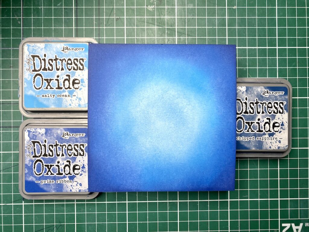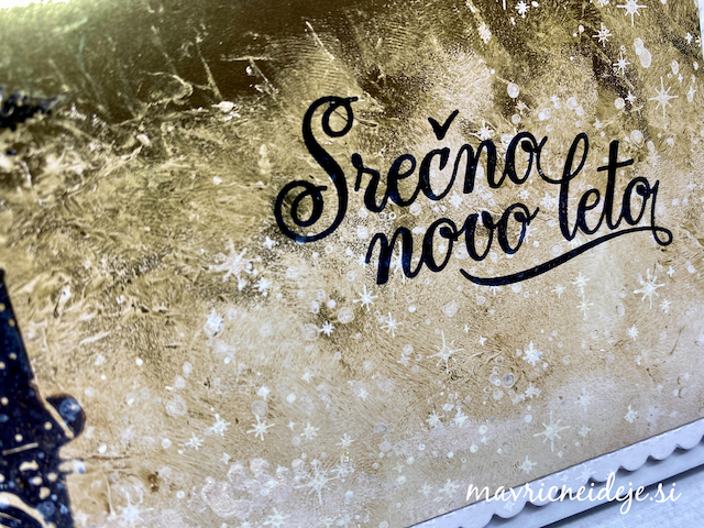 Akvarelni papir sem pobarvala z nežnimi odtenki krem in zelene Distress oxide blazinice. Nato sem naredila različne odtise, dodala teksturno pasto preko stencil šablone. Nato pa sem teksturno pasto polepšala z voskom v belo perl barvi.