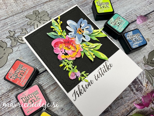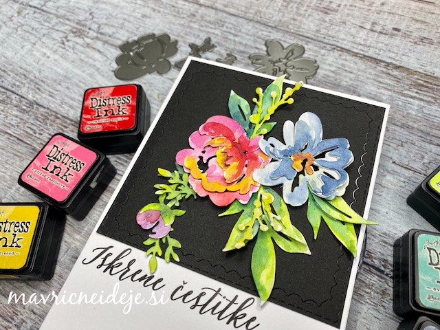 Tim Holtz je v predstavitvi novosti 2021 Sizzix Chapter 1 pokazal krasne novosti in tudi izjemno navdihujoče izdelke. Da ne bi ostalo samo pri ooooh in aaaaah, sem iz različnih setov rezalnih šablon Najlepši Par izbrala motive cvetov in raslin ter se lotila izdelave cvetlične voščilnice.