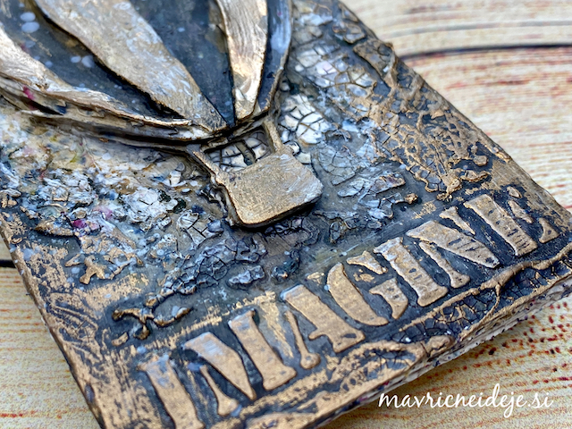Pisalni stroj sem najprej odtisnila z rjavo barvo nato pa po robovih še s črno.