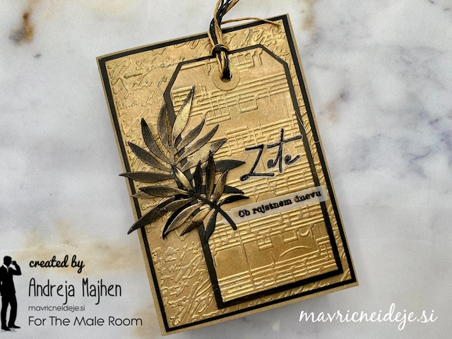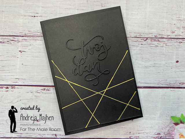 Pozdravljeni v novem izzivu pri The Male Room Blog izzivu. Tokrat želimo voščilnice v enem barvnem odtenku – monokromatsko. Izbrala sem rjavo-črno kombinacijo, saj sem uporabila že oblikovano osnovo za voščilnico v kraft barvi.
