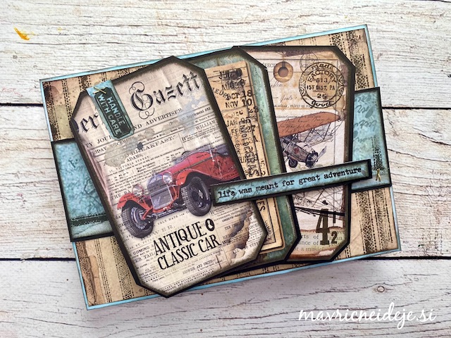 Pod osrednji motiv sem podložila črn papir, ki sem ga nemanoma namestila postrani in nato vse skupaj na pobarvan papir.