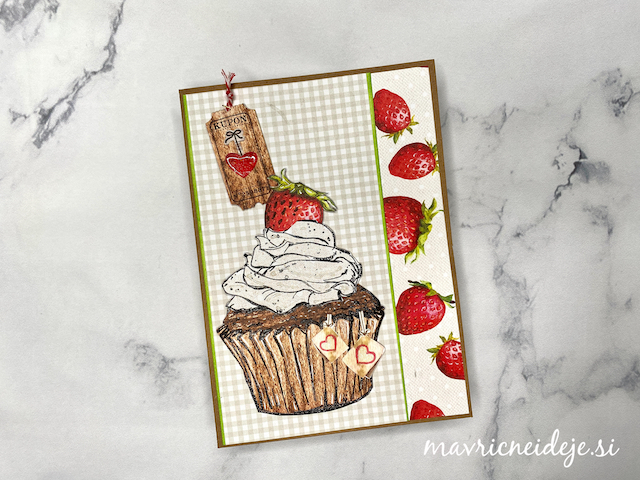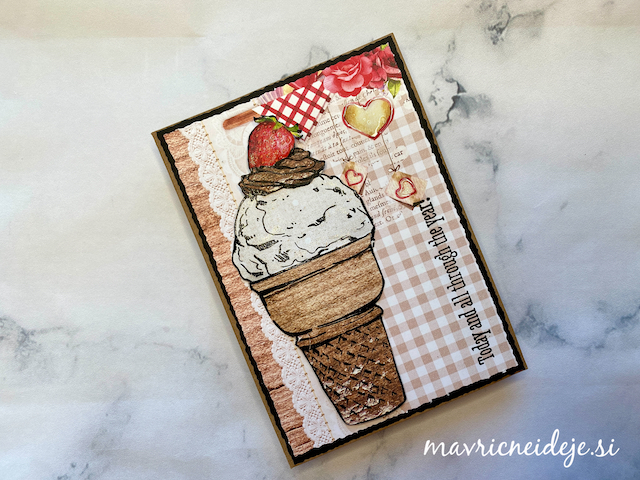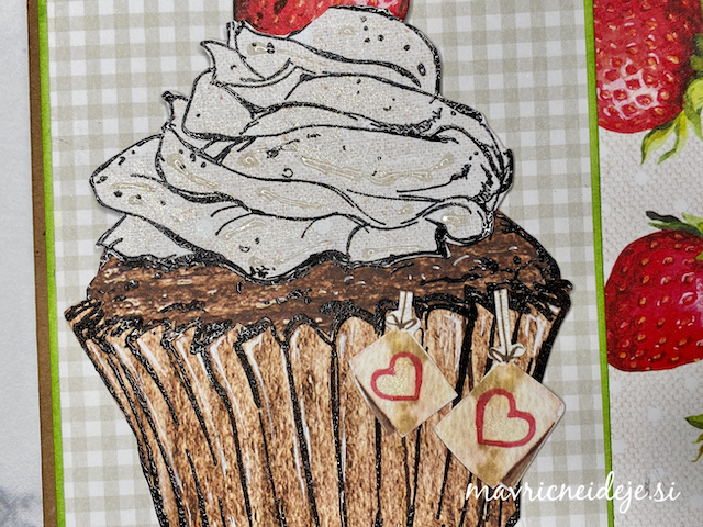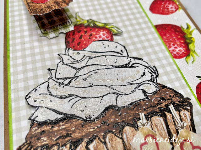 Drugo teksturno ploščo sem namazala z rjavo blazinico, embosirala izrez, ki sem ga nato dodatno osenčila z belo in rjavo blazinico.