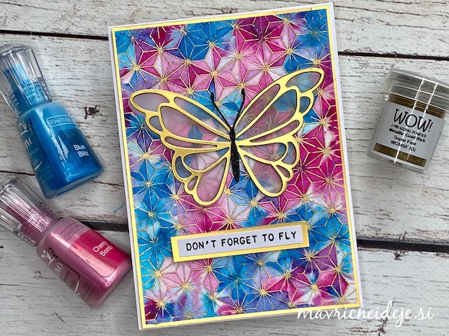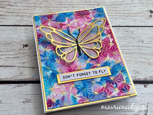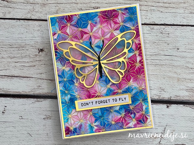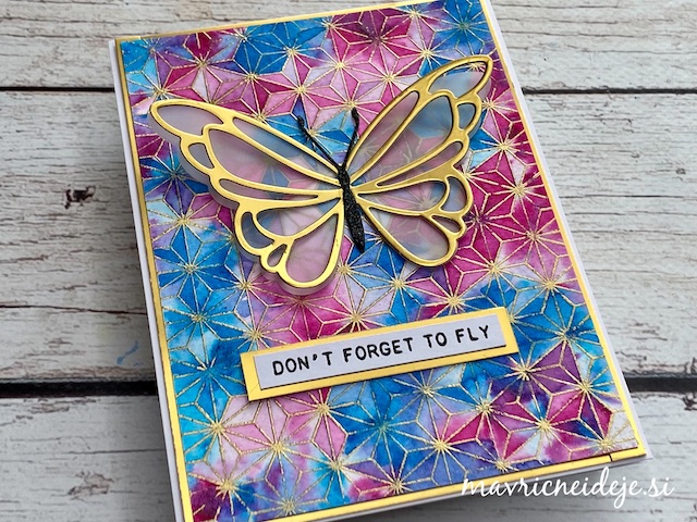 Za izdelavo voščilnice sem uporabila papir z vzorcem, ki sem ga izdelala v enim mojih “packanj”.