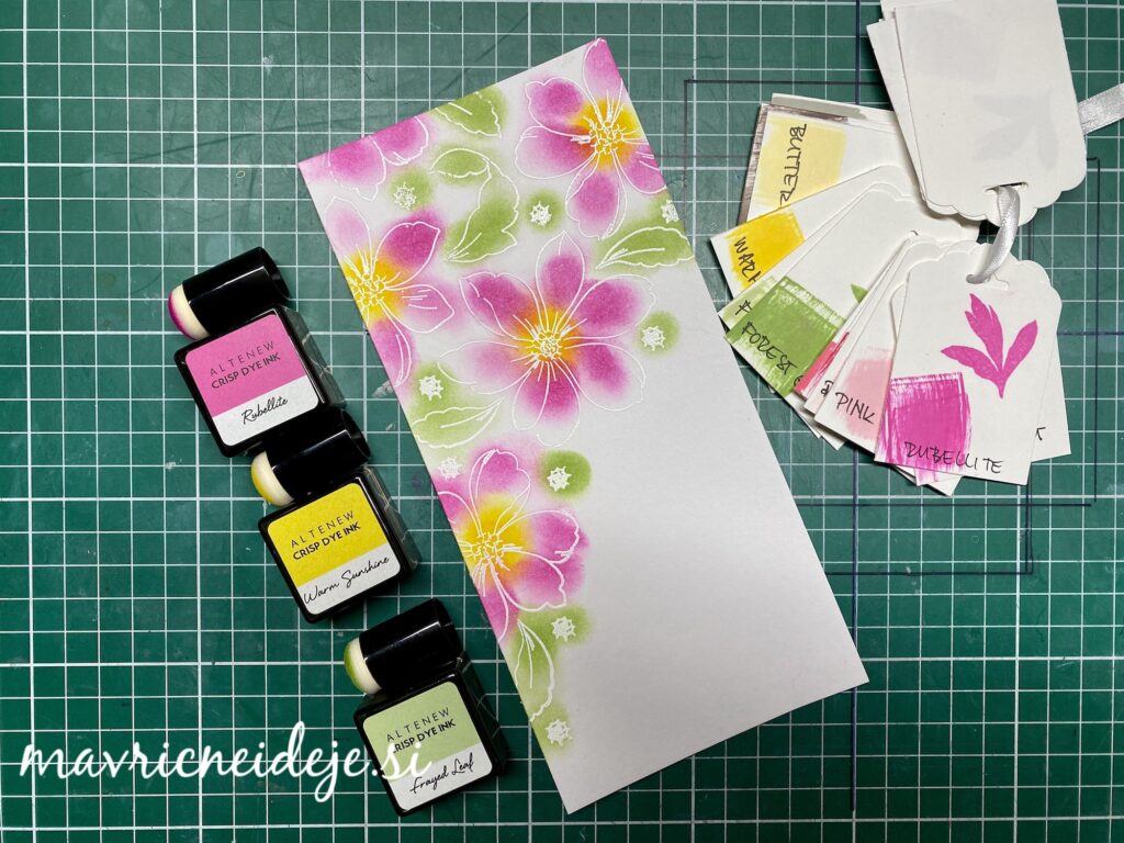 Bel papir sem osenčila z dvema roza Oxide blazinicama in ga embosirala v teksturni srajčki.