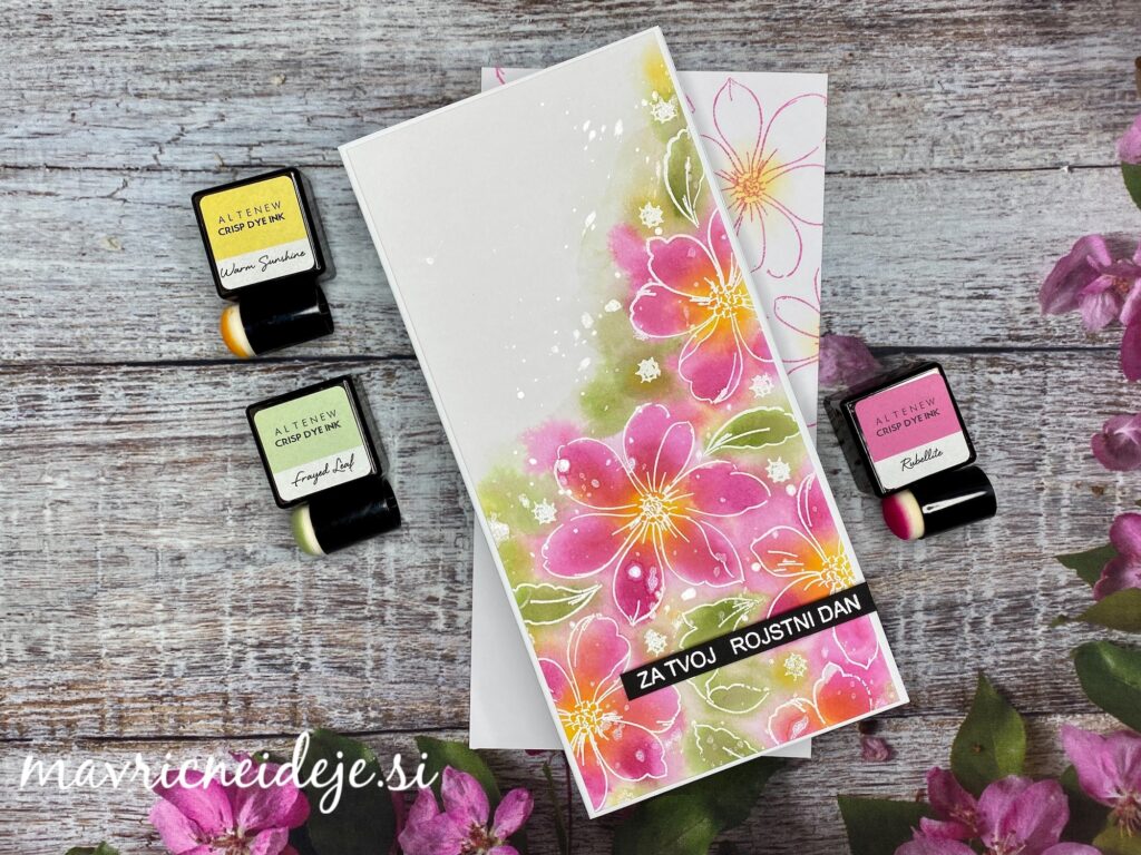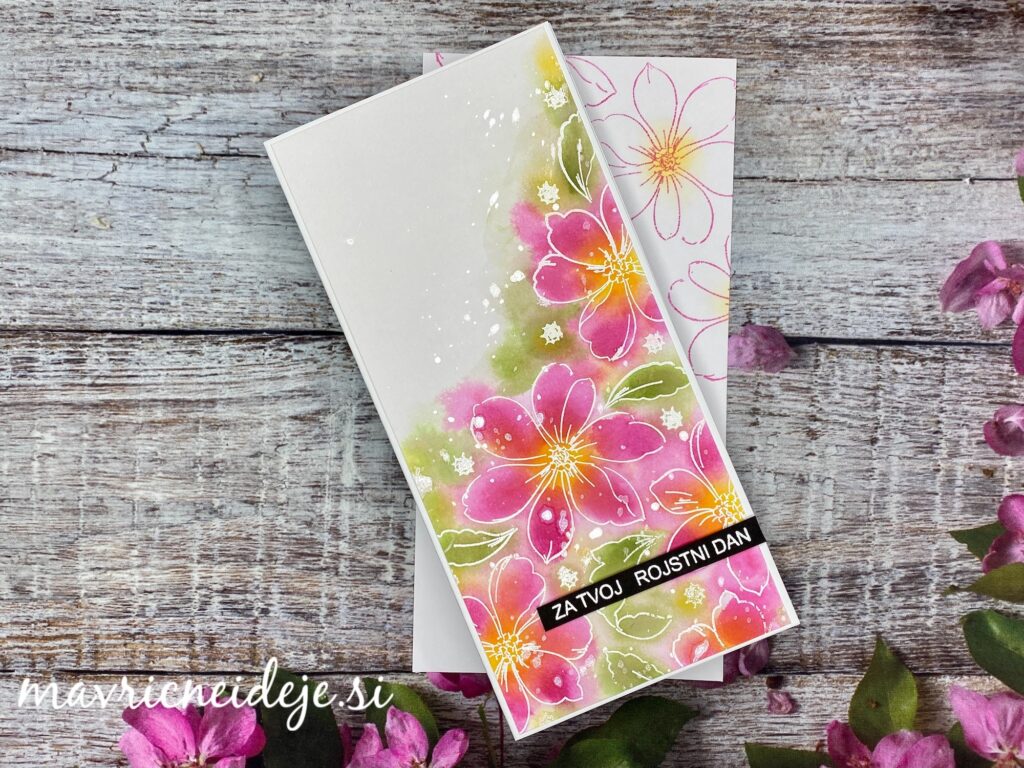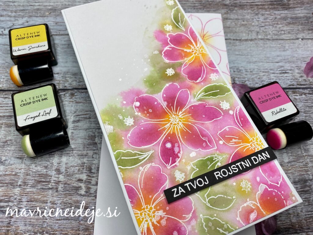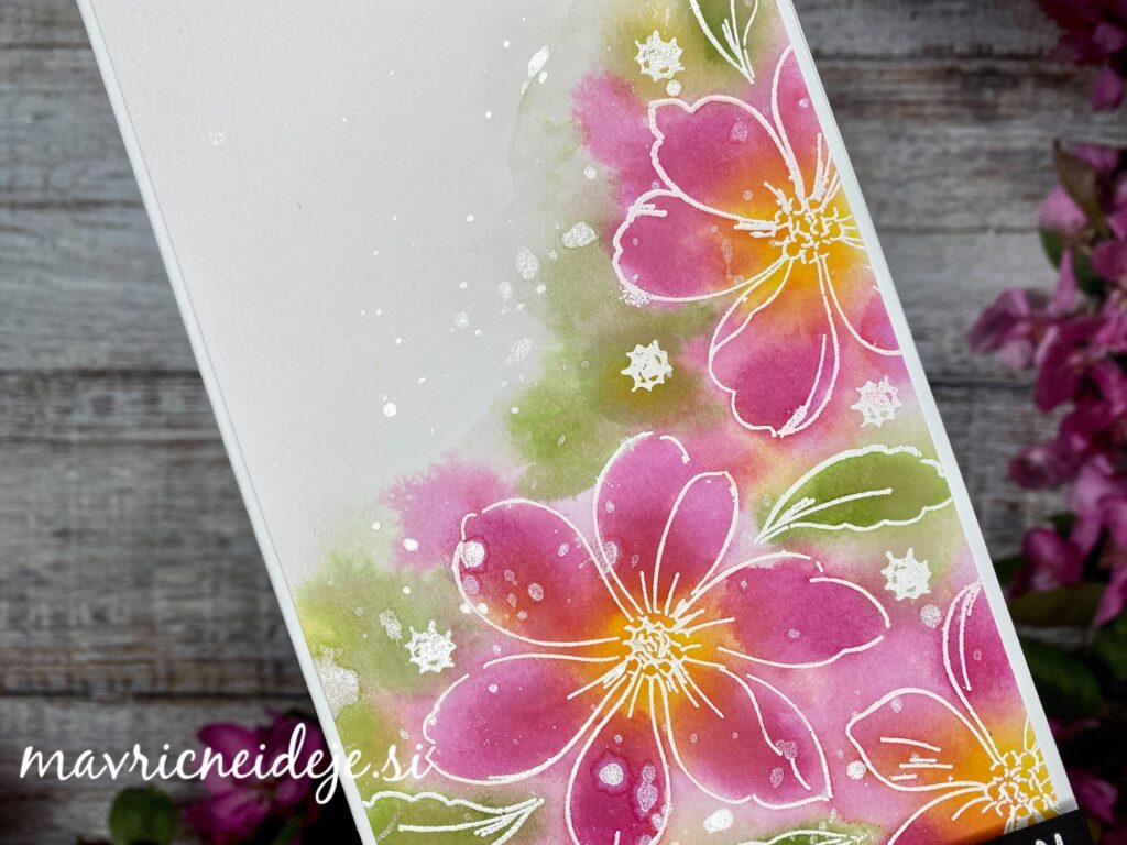 Za malce sijaja sem cvet in ozadje nežno premazala z belo perl voskom.