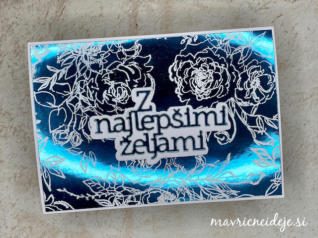 Na papir v videzu ogledala sem z belim embosing prahom embosirala odtis in dodala le še napis.