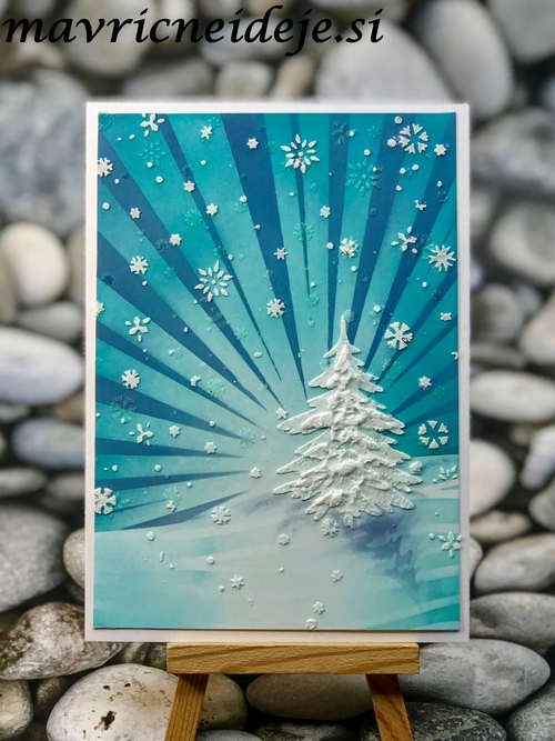 Voščilnica je zelo 3d, saj sem jo izdelala s Sizzix Colorize tankimi rezalnimi šablonami.