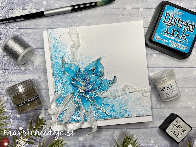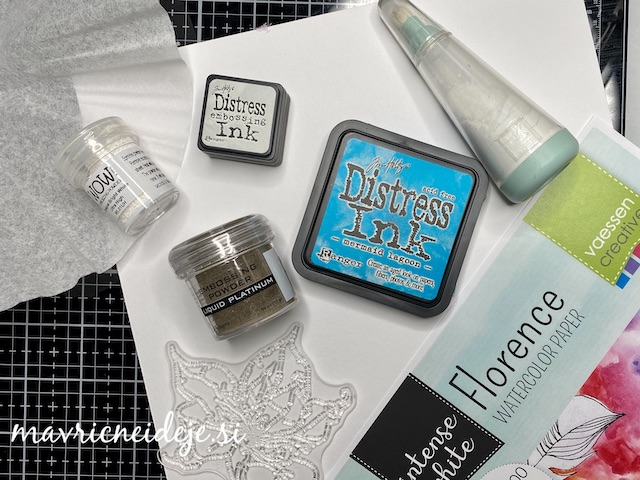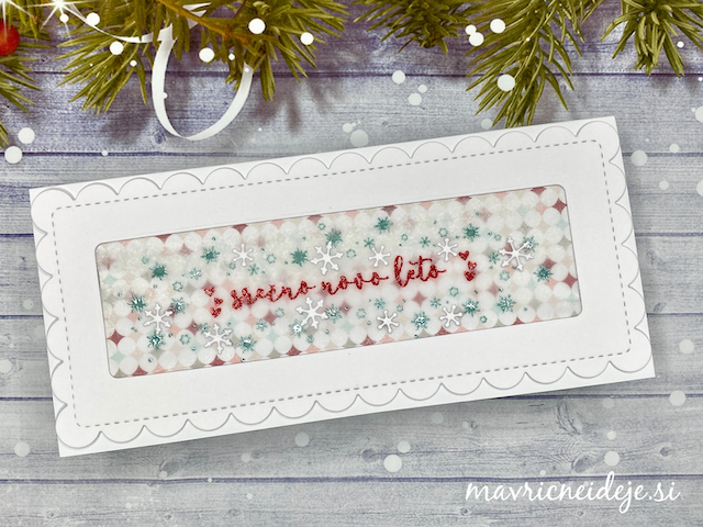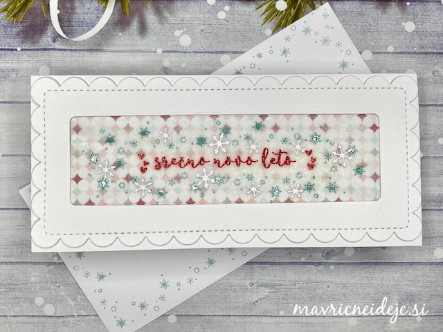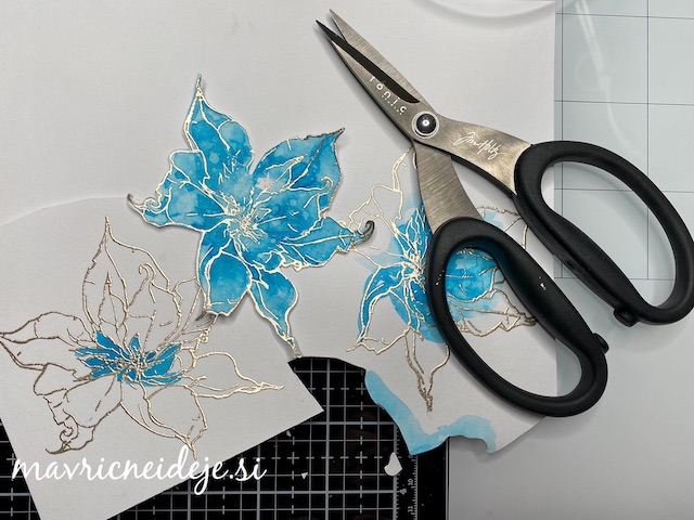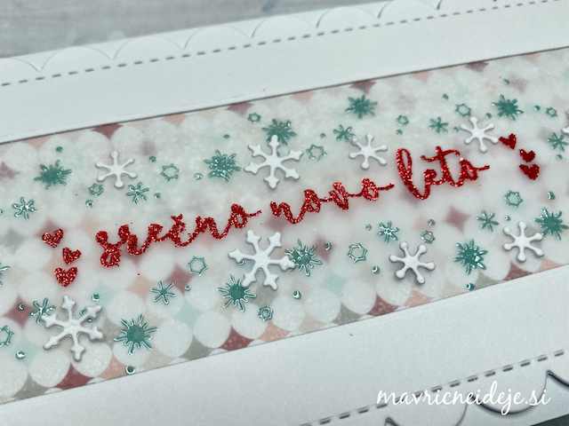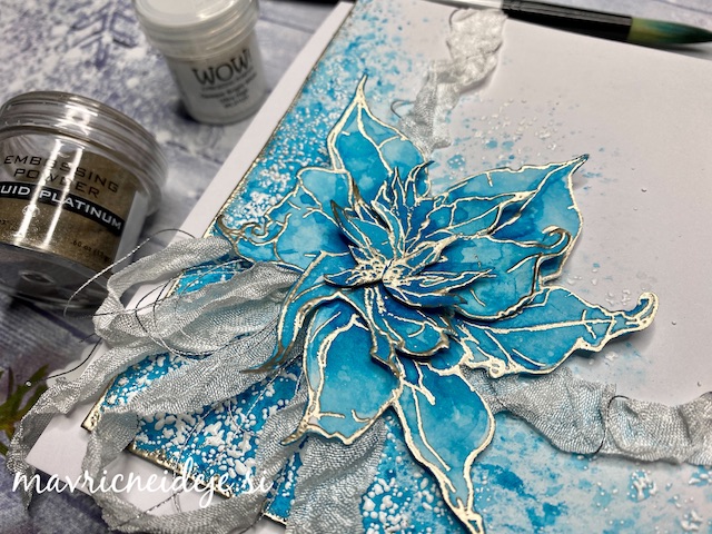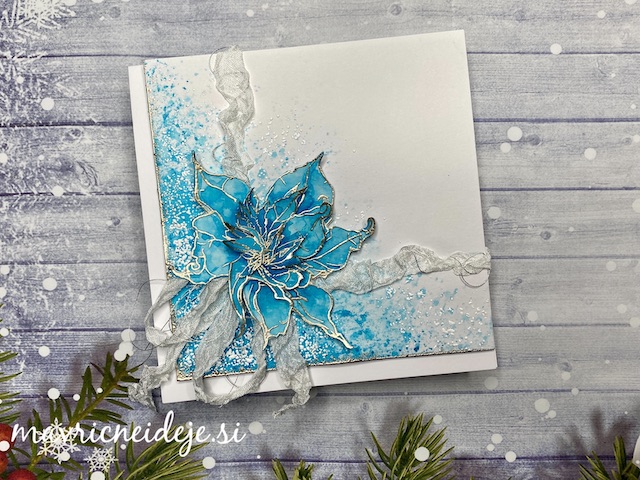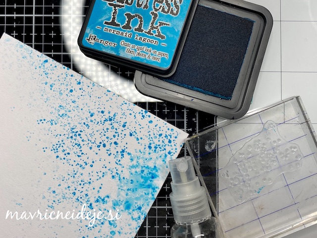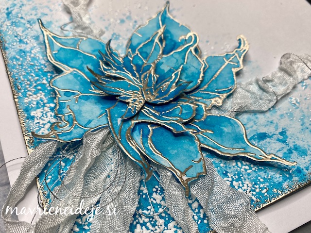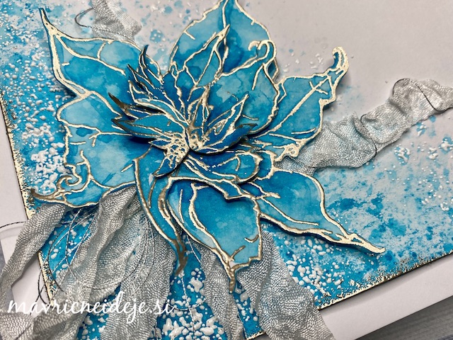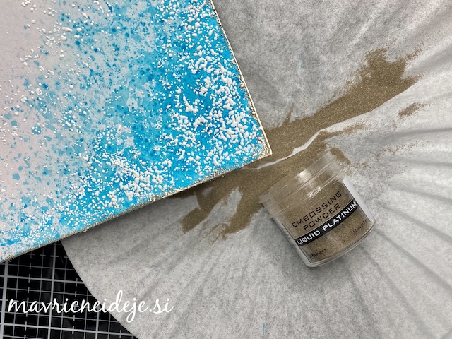 Listič stopljene mase sem s tekočim lepilom nalimala na embosirano ozadje in dodala izrez metulja.